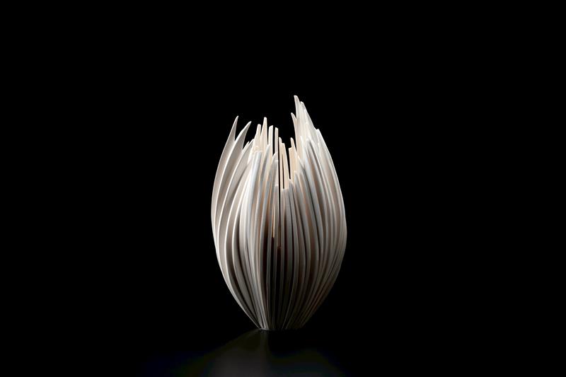 陶芸分野の代表作『Bone Flower』は、建築的構造と工芸の物質性を融合させた革新的なシリーズで、Art Basel や Design Miami をはじめとする国際アートフェアでも高い評価を獲得。金沢21世紀美術館に史上最年少で永久収蔵されるなど、国内外で存在感を高めている。